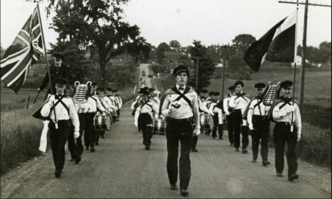 View of half the crowd Andrew and E.J. Davis, with the help of twenty-five committee members helped organized the event. The Davises had the school and grounds wired with electricity, the school decorated, and a stage was erected. The day started with a parade led by Walter from Burn's Bush (King Road, west of the cemetery) to the Kinghorn School. The Newmarket Citizens' Band and a pipe band were in the parade. Besides the bands, there was also entertainment by the Radio Singers.