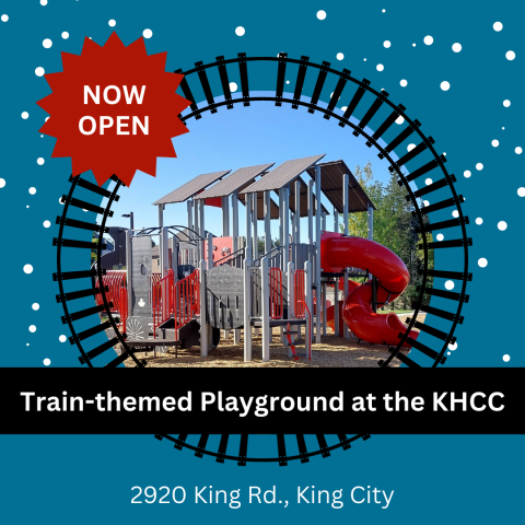 Choo-choo! The King Heritage & Cultural Centre is pleased to announce that we are now home to a new train-themed playground! Located behind the main building, adjacent to ample parking. Washrooms available in the main building during regular operating hours only (Tues-Sat, 10 am to 4 pm).